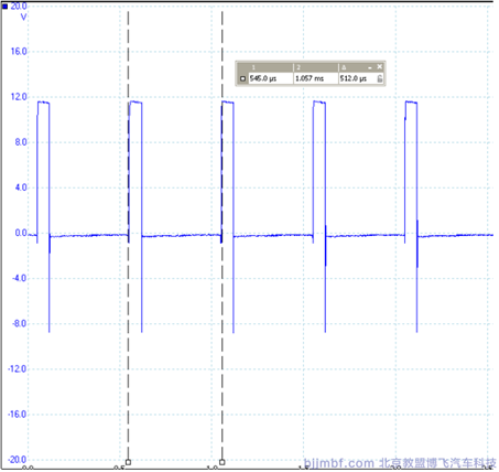 可見,線路干擾造成了 G28在發(fā)動機沒有運轉的情況下而產(chǎn)生了“轉速信號”,信號周期為 515μs該信號在開鑰匙門 5秒左右就消失了,觀察發(fā)現(xiàn)只有節(jié)流閥體在開鑰匙門時工作,且工作 5秒左右就停止工作。